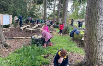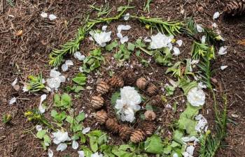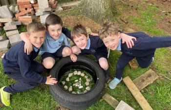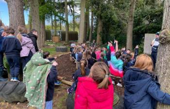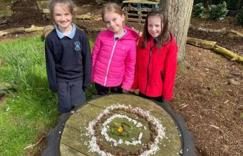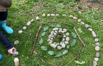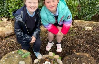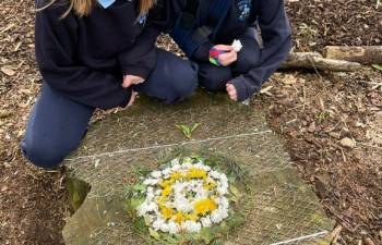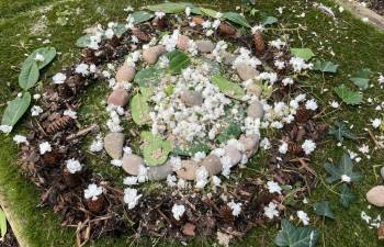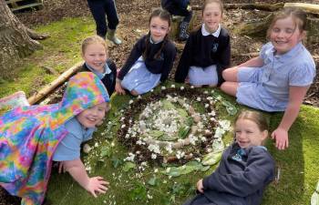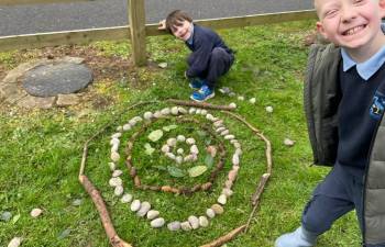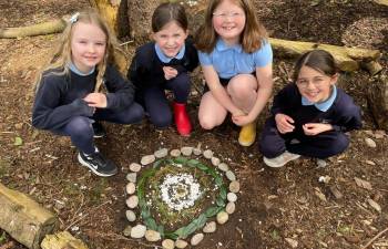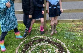 Today in Forest School, P4 pupils worked together to create concentric circles using materials they found in their surroundings. They carefully selected natural resources such as sticks, leaves, and stones to form their patterns. This activity helped develop teamwork, creativity, and an appreciation of the natural environment.